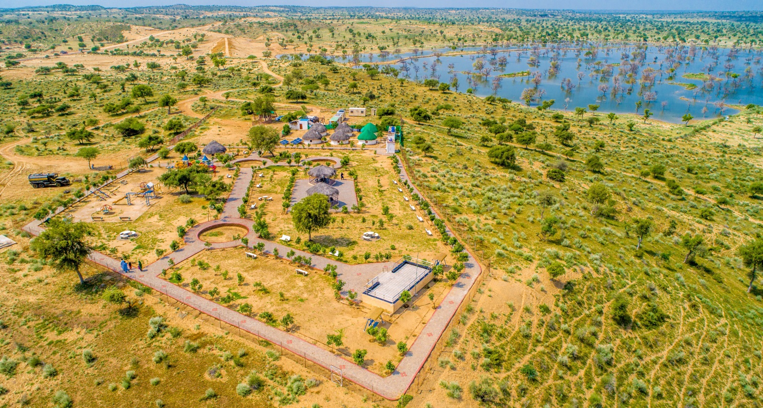项目部的疏干排水对于生产至关重要。项目部认为,抽取的“生命之源”——地下水不能白白浪费,如何处理这些巨量水资源?于是就有了在塔尔沙漠“人造绿洲”——格兰诺水库和塔尔南湖。沙漠有了水的滋养,为人们展现出了意想不到的生命奇迹。据不完全统计,格兰诺水库和塔尔南湖栖息着十多种鸟类,生活着数量众多的鱼类,创造出小区域生态家园,福泽了塔尔百姓。